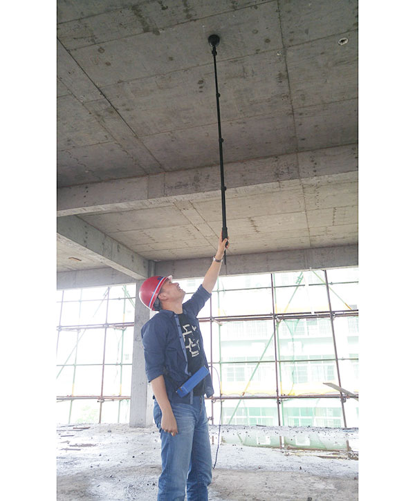 上饒市職業(yè)中學(xué)宿舍樓D樓建設(shè)項目位于上饒市信州區(qū)志敏大道,由上饒市信州區(qū)區(qū)委區(qū)政府籌資興建,為現(xiàn)澆筑框架結(jié)構(gòu)。根據(jù)結(jié)構(gòu)的特點,公司采用回彈法檢測混凝土強度、采用掃描法檢測鋼筋保護層厚度和樓板厚度。